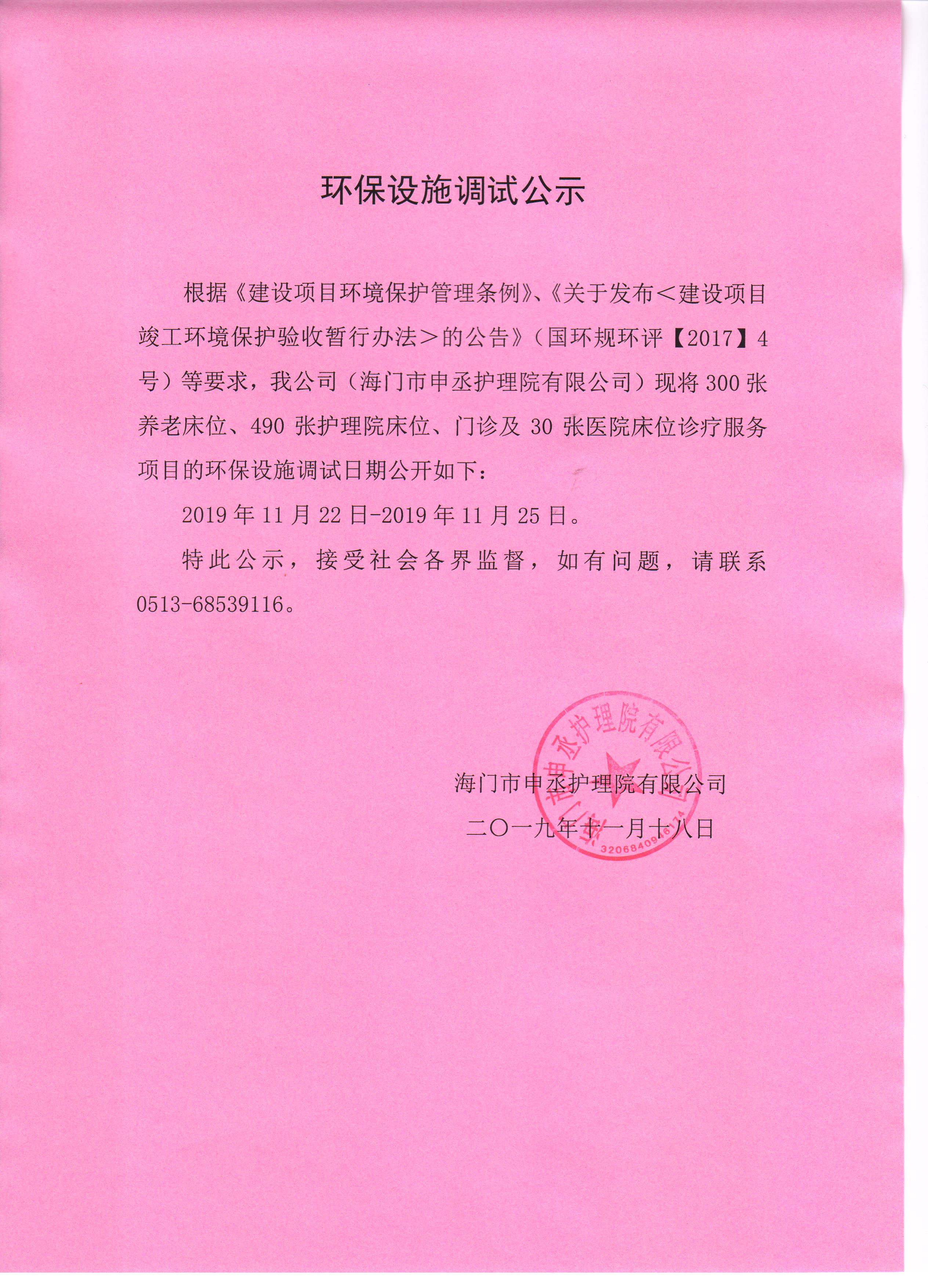 下一篇:海門市申丞護(hù)理院有限公司主體工程和所有配套的環(huán)保設(shè)施竣工公示