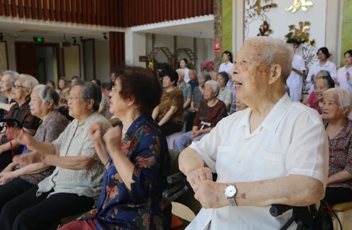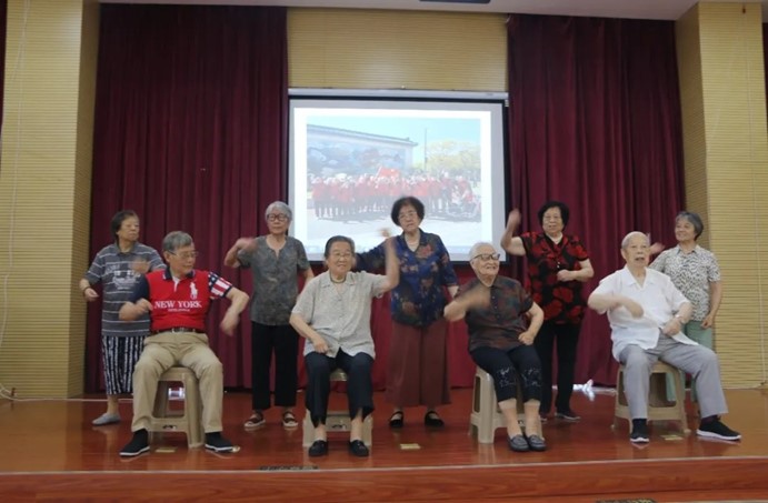 軍歌嘹亮,喜迎八一。海門申丞護(hù)理院的爺爺奶奶們歡聚一堂,用響亮的歌聲和激昂的舞蹈表達(dá)對(duì)軍人的致敬,結(jié)尾還有實(shí)習(xí)生們的合唱《歌唱祖國(guó)》,讓我們看到了老一輩的堅(jiān)韌和新時(shí)代青年的傳承。