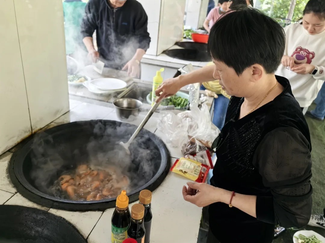 臨近午餐,大家一起圍在大鍋灶邊上,共同準備一頓豐盛的午餐。自己生火煮飯,大家分工明確,和諧友愛,只有歡聲笑語和飯菜香,鍋灶飄起的煙火,讓大家感受到了大家庭的溫暖。