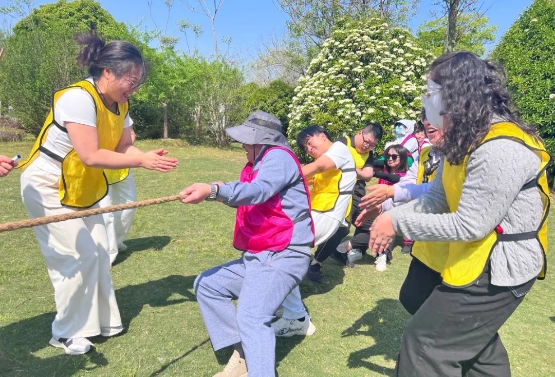 上午,大家一到營地便開展了一場趣味運動會,幫助大家去去班味。項目有不倒森林、拔河、極限飛盤、動力神圈四個活動,大家在這場運動會中忘卻了工作的壓力和煩惱,盡情的釋放自己。